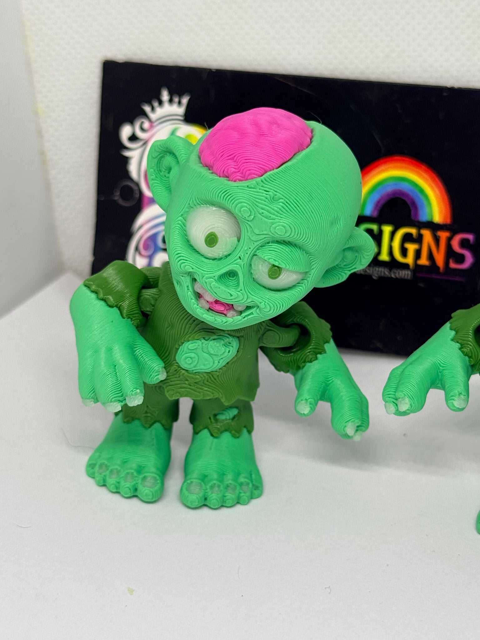 Straight from the land of laughs (not screams!), these adorable little zombies are here to steal your heart — not your brains! With their goofy grins, bright green skin, and cheeky pink brains peeking through, they’re the perfect mix of spooky and sweet.