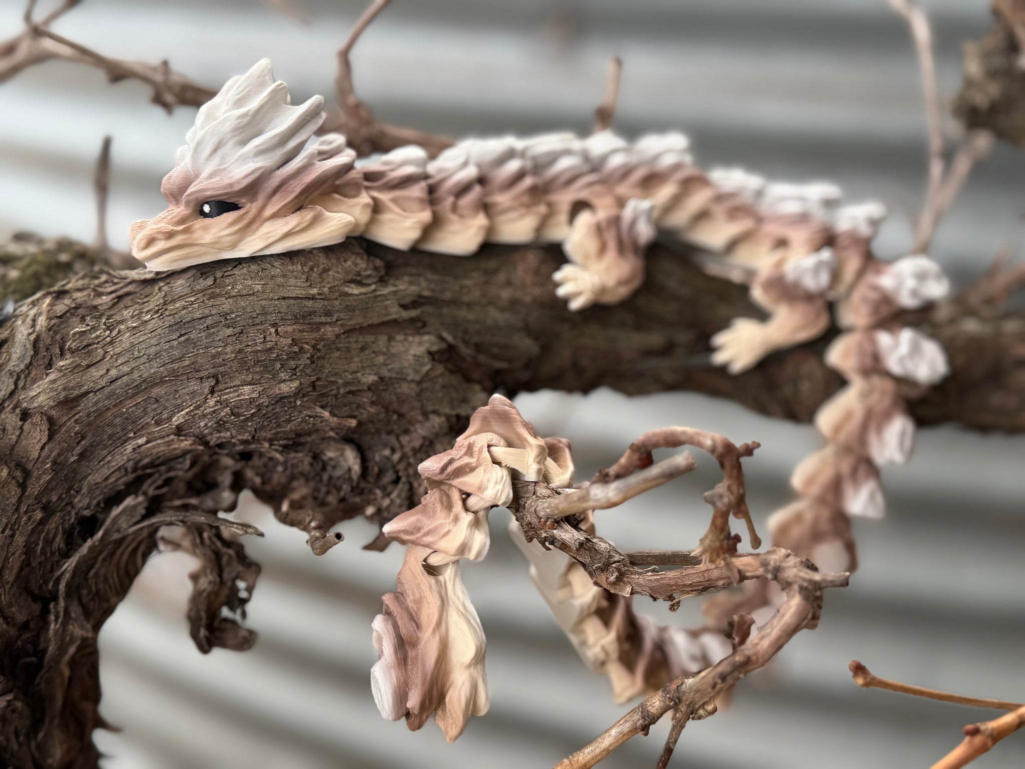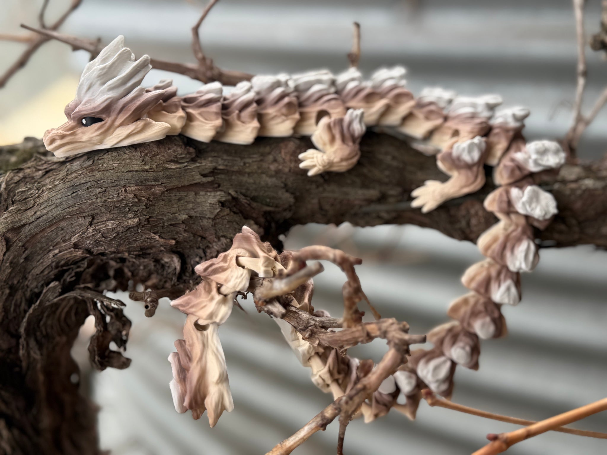 This gorgeous Woodland Dragon is 3D printed in soft earthy tones, with flexible joints that let it coil, climb, or curl around your shelf, branch, or desk.