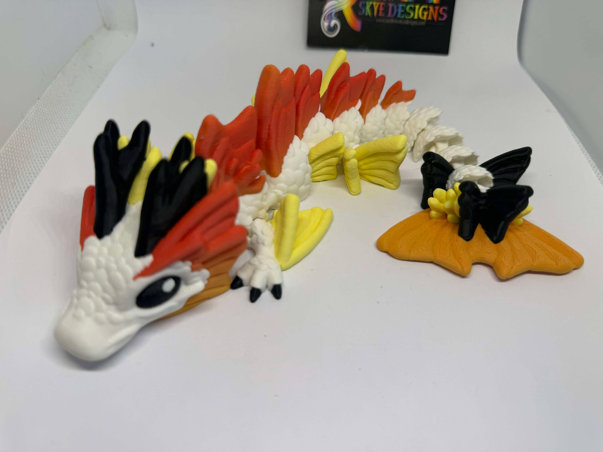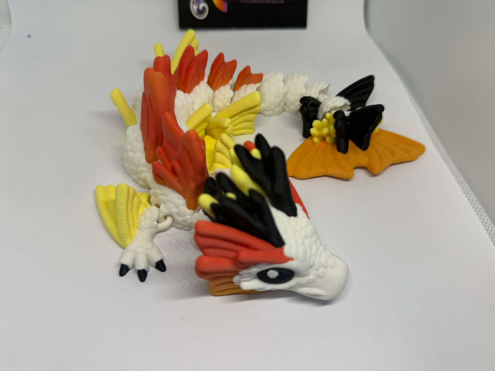 Meet the Koi Dragon, a stunning blend of fiery koi-inspired colours brought to life in this beautifully detailed 3D printed collectible! With bold reds, oranges, yellows, and crisp black and white accents, this articulated dragon features a flowing, scale-like texture and elegant fins that capture the grace of a koi fish in flight.