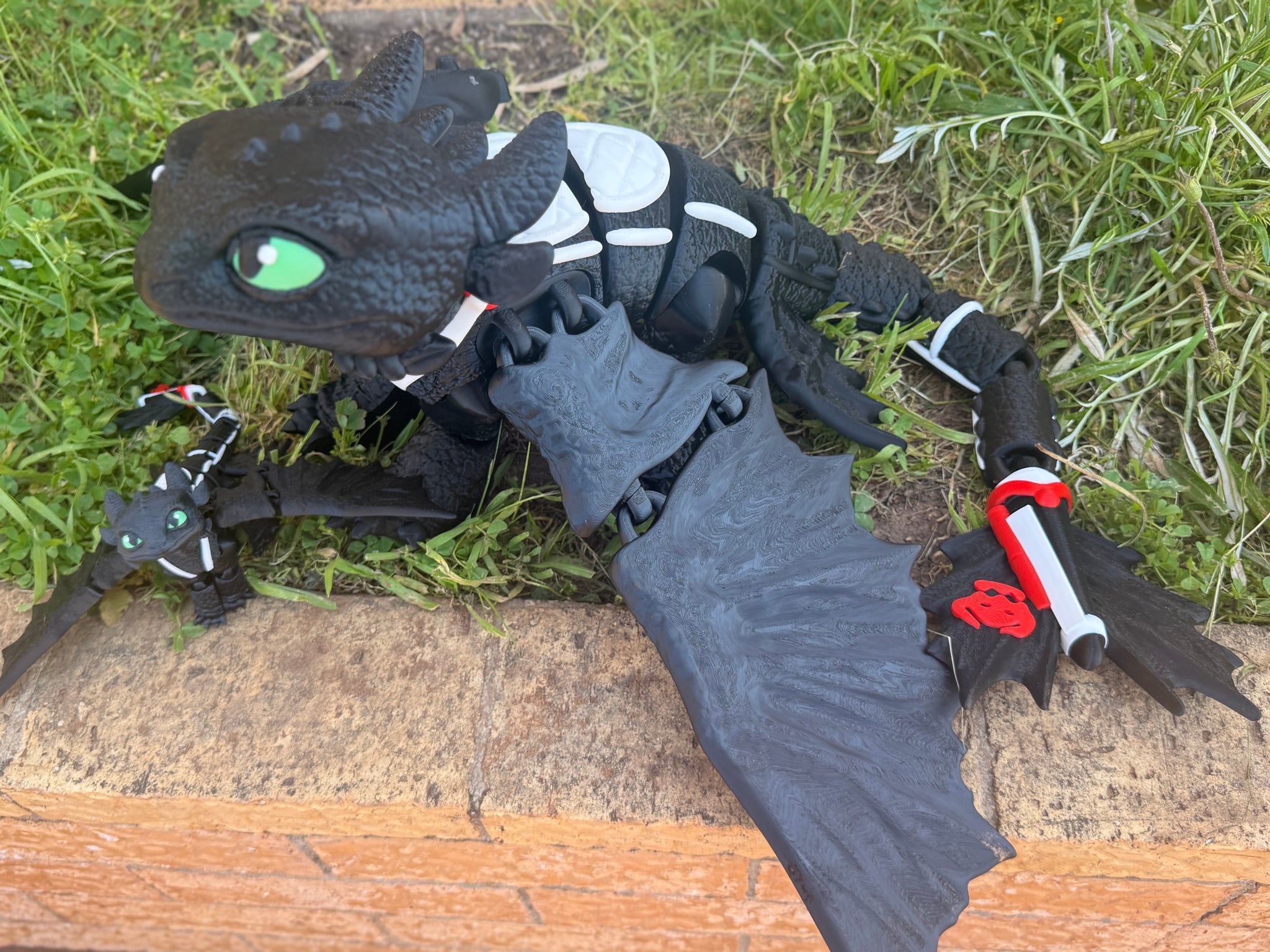 Bring home your very own Night Fury! This highly detailed, 1 metre long 3D printed Toothless is fully articulated, making him perfect for display, play, or as a collector’s centerpiece. With his striking green eyes, textured scales, and custom tail, this dragon looks like he’s flown straight out of How to Train Your Dragon.