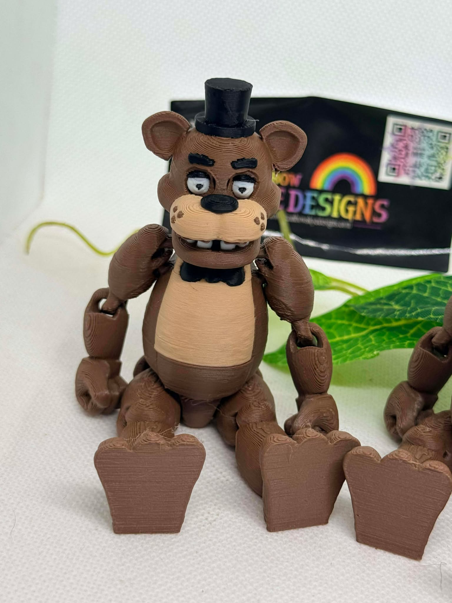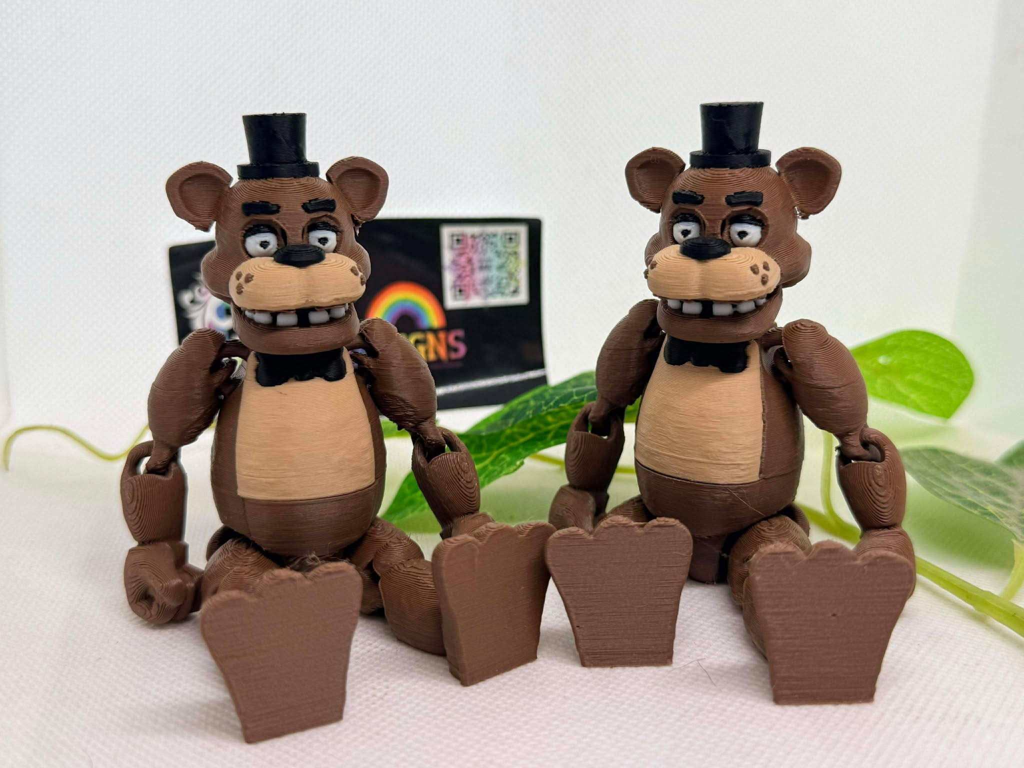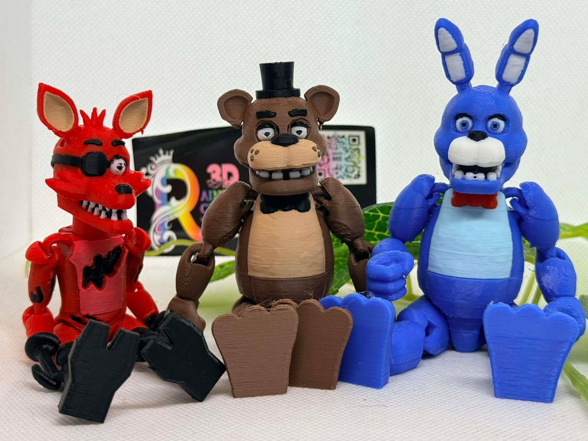 Friday Night at Freddy’s – 3D Printed Animatronic Display Figures Bring the spooky fun to your shelf with Friday Night at Freddy’s! This set of 3D printed animatronic-style figures captures the creepy-cute vibe fans love, with bold colours, expressive faces, and a chunky articulated design that makes them perfect for display. Ideal for collectors, gamers, and horror fans, these figures look awesome on desks, shelves, or in themed display cabinets. Features: • High-detail 3D printed figures • Articulated / poseable design • Bright, bold colours with spooky personality • Free-standing display figures • Printed with care and attention to detail Perfect for: • Horror & animatronic fans • Gamer desk décor • Display shelves or cabinets • Unique gifts for teens & adults • Market stall eye-catchers Size: Approx. [12cms tall] Colours: Red, brown, and blue figures shown. Colours may vary slightly due to the 3D printing process.