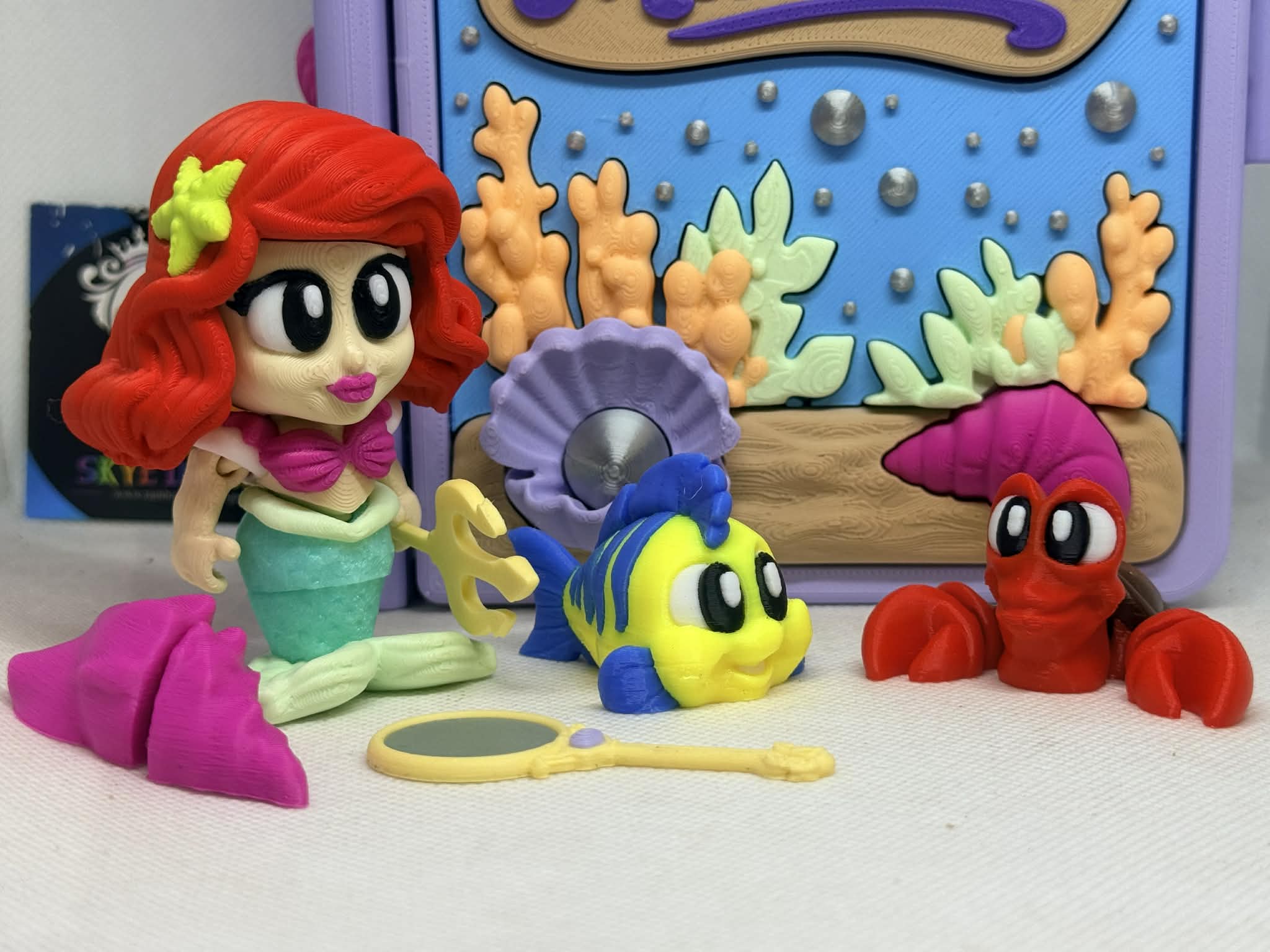 Dive into an underwater world of fun with this adorably cute mermaid-themed 3D printed set! Bursting with bright colours, big sparkly eyes, and ocean vibes, this little collection is perfect for imaginative play, display shelves, or gifting to a mermaid lover 🐚✨
