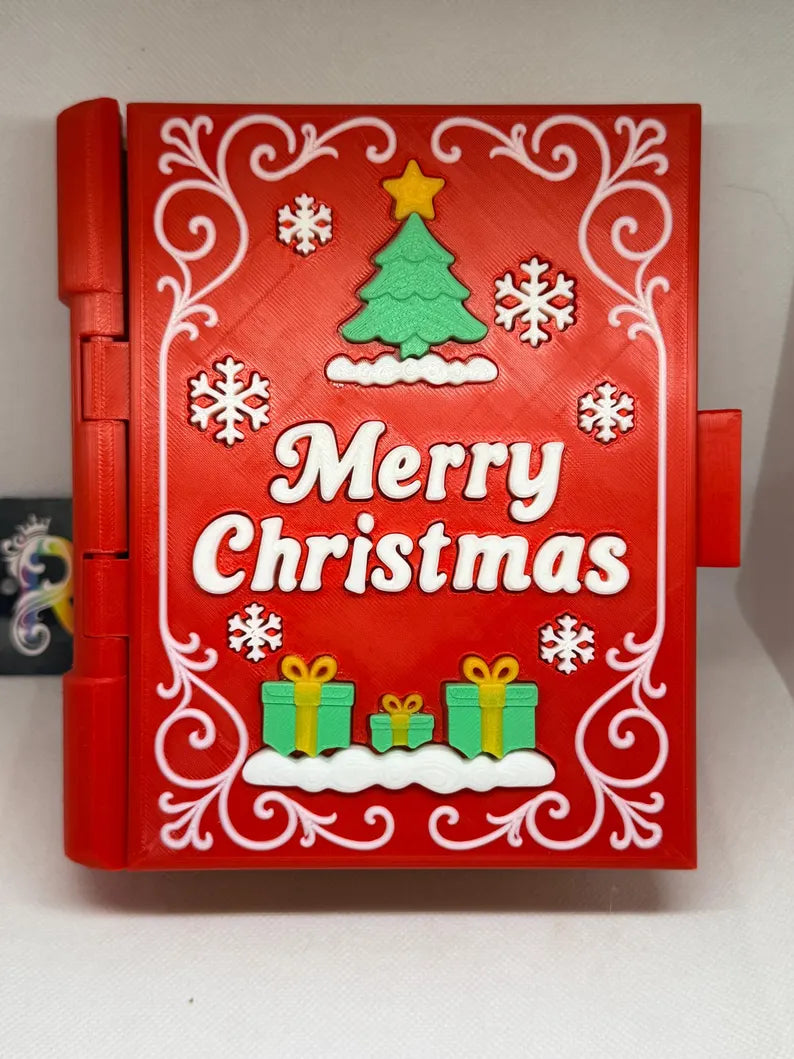 Bring the magic of Christmas to life with this adorable 3D printed Santa’s Storybook Display Set! Featuring a festive “Merry Christmas” storybook box that opens to reveal Santa, his toy sack, a Christmas tree, candy cane, and presents — this charming set is perfect for adding a whimsical touch to your holiday décor.